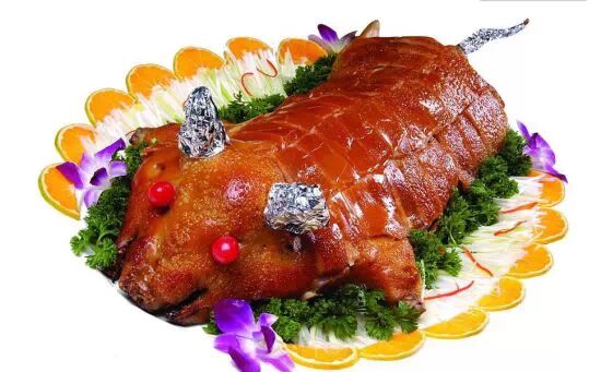 还没到融水的时候,同行的小伙伴们就已经神神叨叨着融水当地的美食,什么老街的馄饨 、三旺炉的烤牛肉 、商品街的牛腩粉 、老牌螺丝粉……要我说,融水最特色的美食啊,应该是烤香猪!香猪肉一般有两种吃法:一种是用清水煮熟白切,蘸佐料盐水而食;另一种是整猪除毛后烘烤,称为“烤香猪”。烤幼猪称为“烤乳猪”,其味香甜,多吃不腻,是当地逢年过节的主菜,也是赠送亲朋好友的上等礼品。