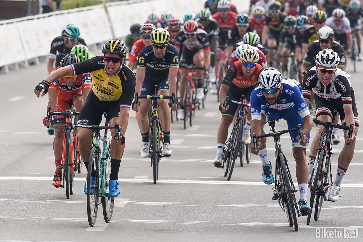 虽然爬坡将原先的大集团打散,但车手之间的差距并不大。借着随后的下坡,前方几个集团陆续重组为新的大集团。比赛最后25公里是平路,70人左右的大集团在乐透-珍宝、快步和乐透-速德奥的领骑下,不可避免进入最后的集团冲刺。