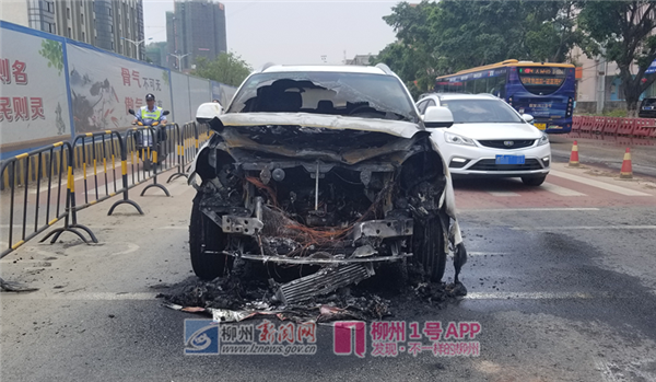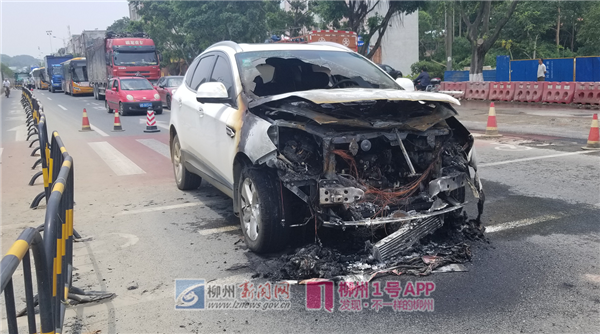 刚刚,古亭大道上一辆汽车发生自燃,车头被烧毁
