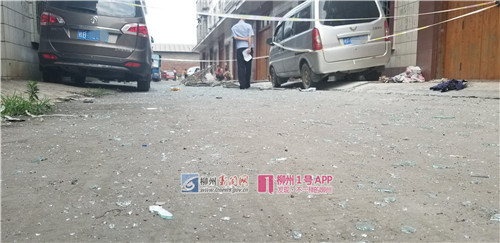 柳长路一居民楼内液化气罐燃爆,玻璃撒满路面,一女子严重烧伤