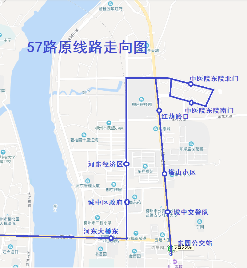 为方便乘客前往市中医医院东院以及周边小区和学校,柳州轨道集团恒达巴士公司定于2018年9月30日启用河东经济区公交首末站,当天从首班开始调整57路、82路和快8号线至河东经济区公交首末站发车,具体如下: