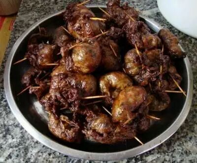 融安烧炙是融安的特色小吃之一。外貌似油炸丸子,呈褐色,油亮。有一层当地人称为“猪网油”的东西包住。用碎猪肉、碎猪肝、葱白、冬笋等制成肉馅。经油爆和炭火炙烤过后香脆诱人,每逢春节当地百姓也自己动手包烧炙。平时配以滤粉食用。
